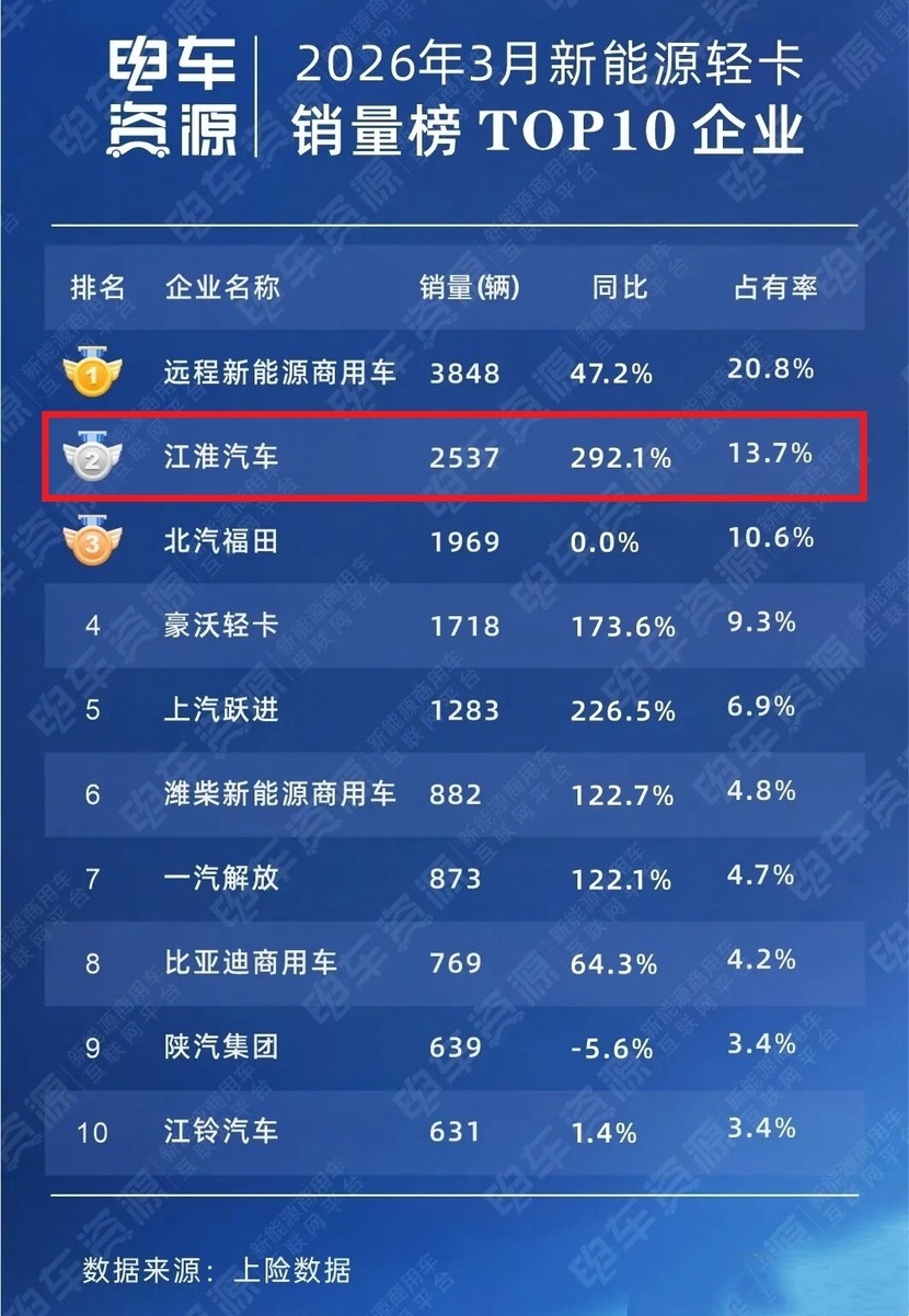 最近,多地0号柴油价格再次突破8元大关,新能源轻卡成为众多卡友的首选。3月新能源轻卡销量直接印证了这一趋势:单月销1.85万辆,环比近乎翻倍,创近期新高。特别是江淮新能源轻卡,单月销量2537辆,同比暴增292.1%,市场份额冲到13.7%,稳稳坐上行业第二把交椅。那么,向来精打细算的物流老铁们长沙炒股配资公司,怎么突然就齐刷刷选择江淮新能源轻卡,答案其实就藏在“三手”好牌里。