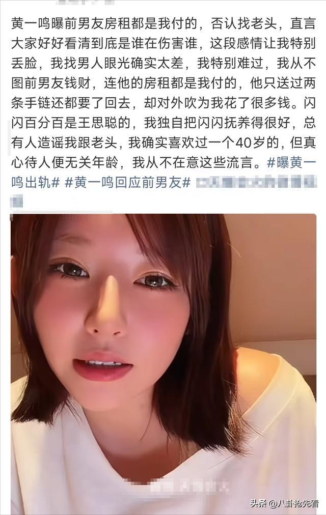 结果她却私生活混乱,和好多人在一起过,甚至还跟过60岁的老头,这话一出,黄一鸣如果处理不好,估计单身妈妈的名声都塌了。